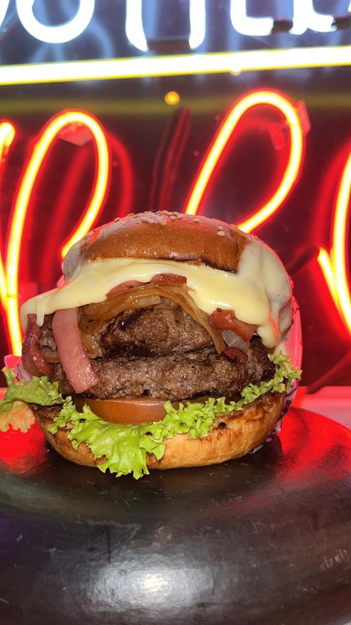 La nueva y la mas solicitada, doble Carne Angus de 140Gr gratinadas en queso americano, en Pan Brioche, tomate fresco, cebolla caramelizada, tocineta premium en tiras y las exclusivas salsas de la casa