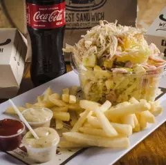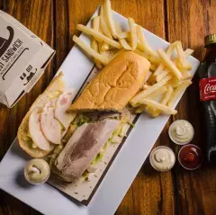 Sándwich de 35 cm + 200 gr de papas a la francesa + gaseosa de 400ml.