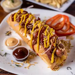 Comb@: Perro a Elección, limonada natural y 100 gr de papas a la Francesa.