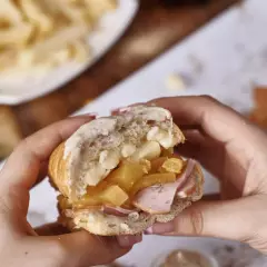 Sándwich de 22 Cm de Jamón Ahumado, Queso Doble Crema, Piña y Salsa de Ajo.