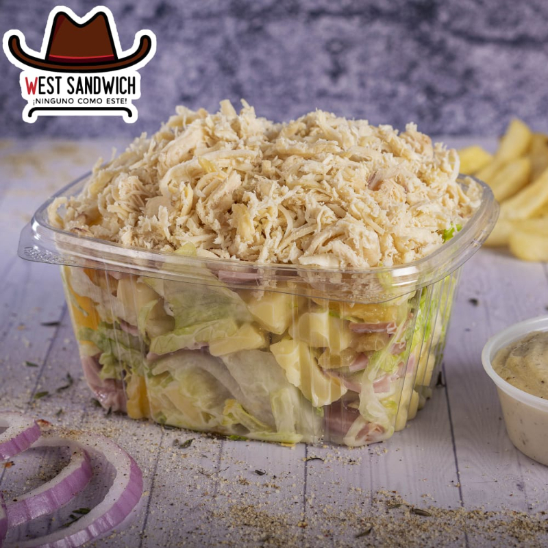 Pollo, jamón, queso, piña, lechuga, mayonesa.