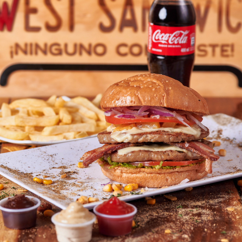 Hamburguesa West*1 + Porción Papas a la Francesa 200 g*1 + Coca Cola*1