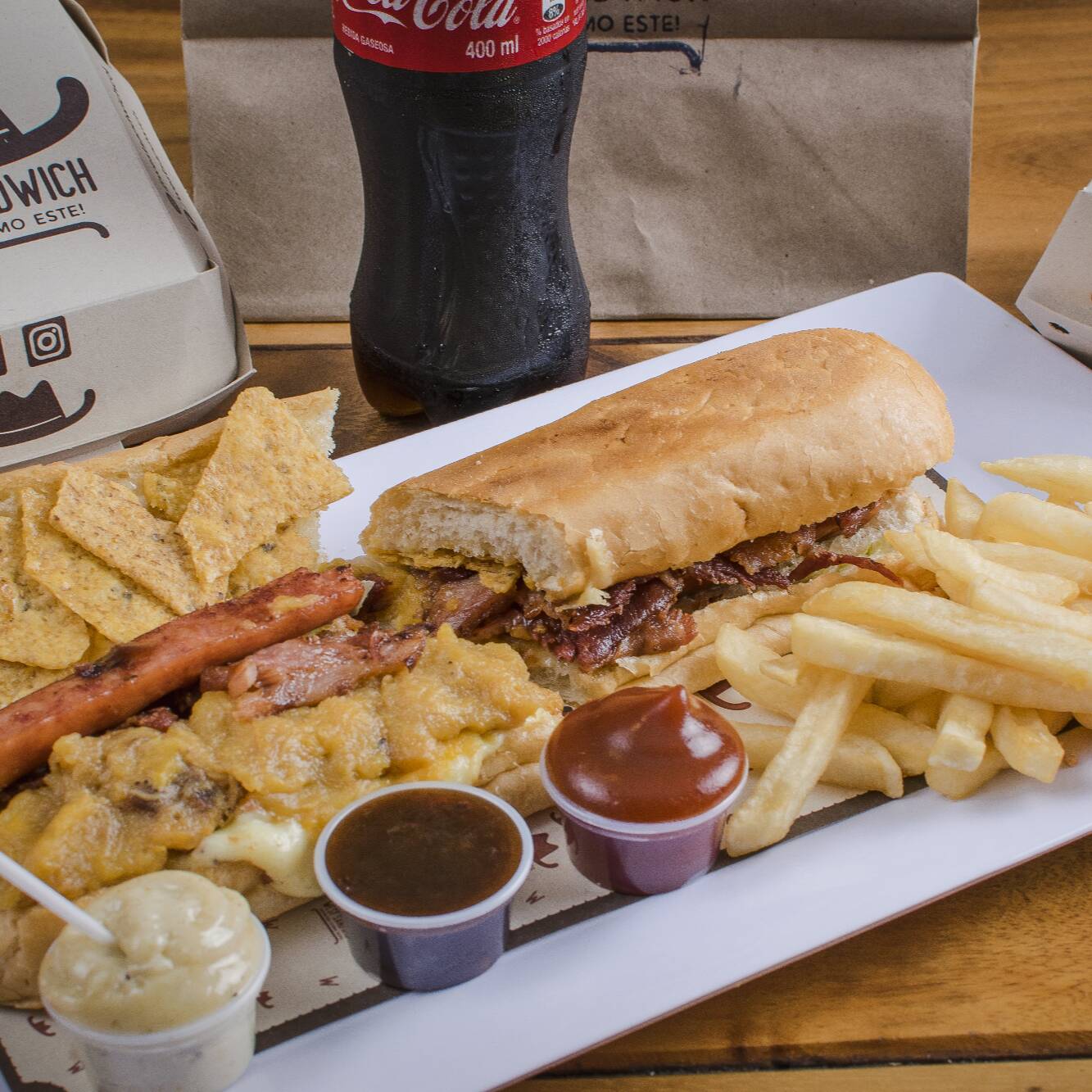 Sandwich super especial, porción de papas a la francesa y gaseosa