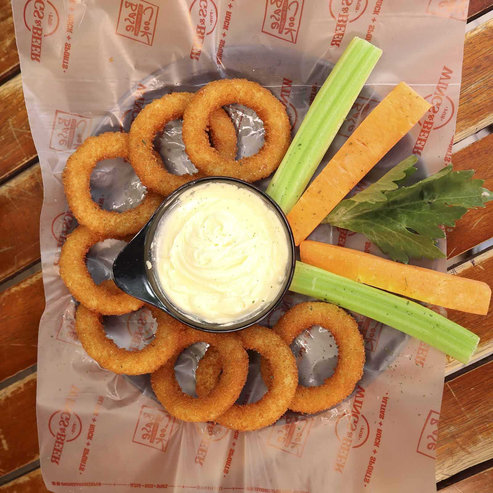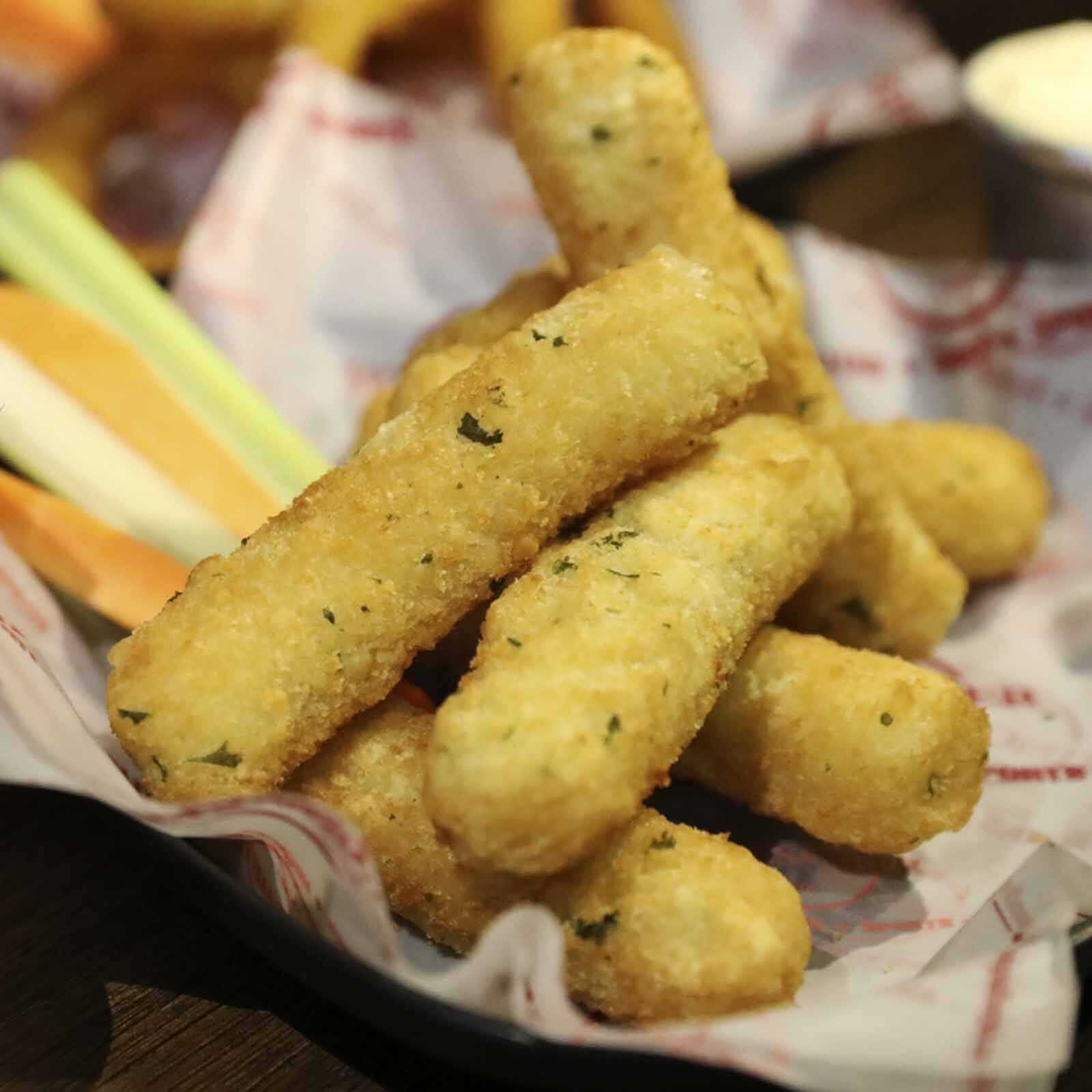 10 Piezas de Alitas, 4 Boneless, 3 Cheese Fingers, papita criolla, apio, zanahoria, guacamole, sour cream y 1 salsa a elección.