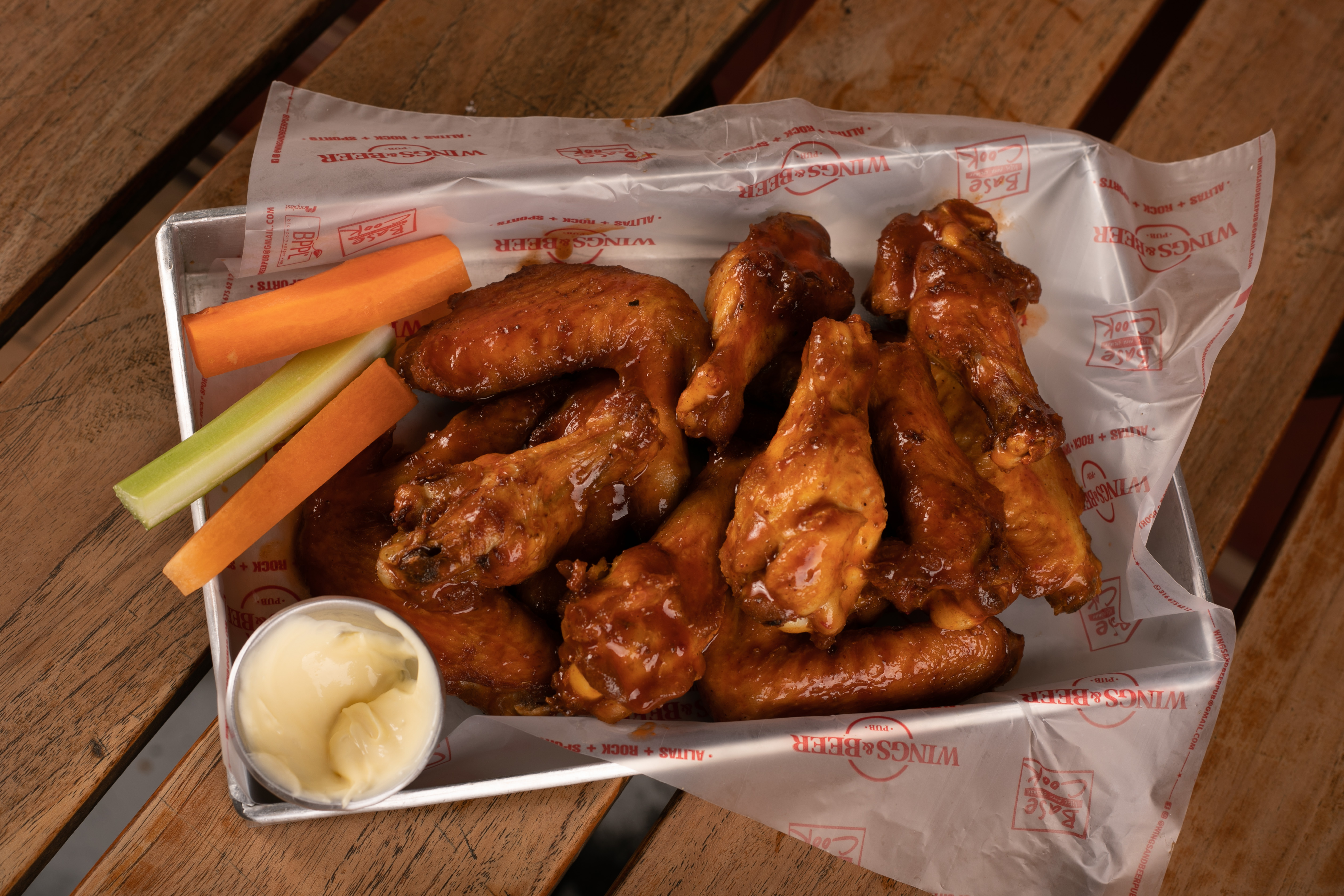 50 Piezas de Alitas + Apio + Zanahoria + 4 salsas a elección.