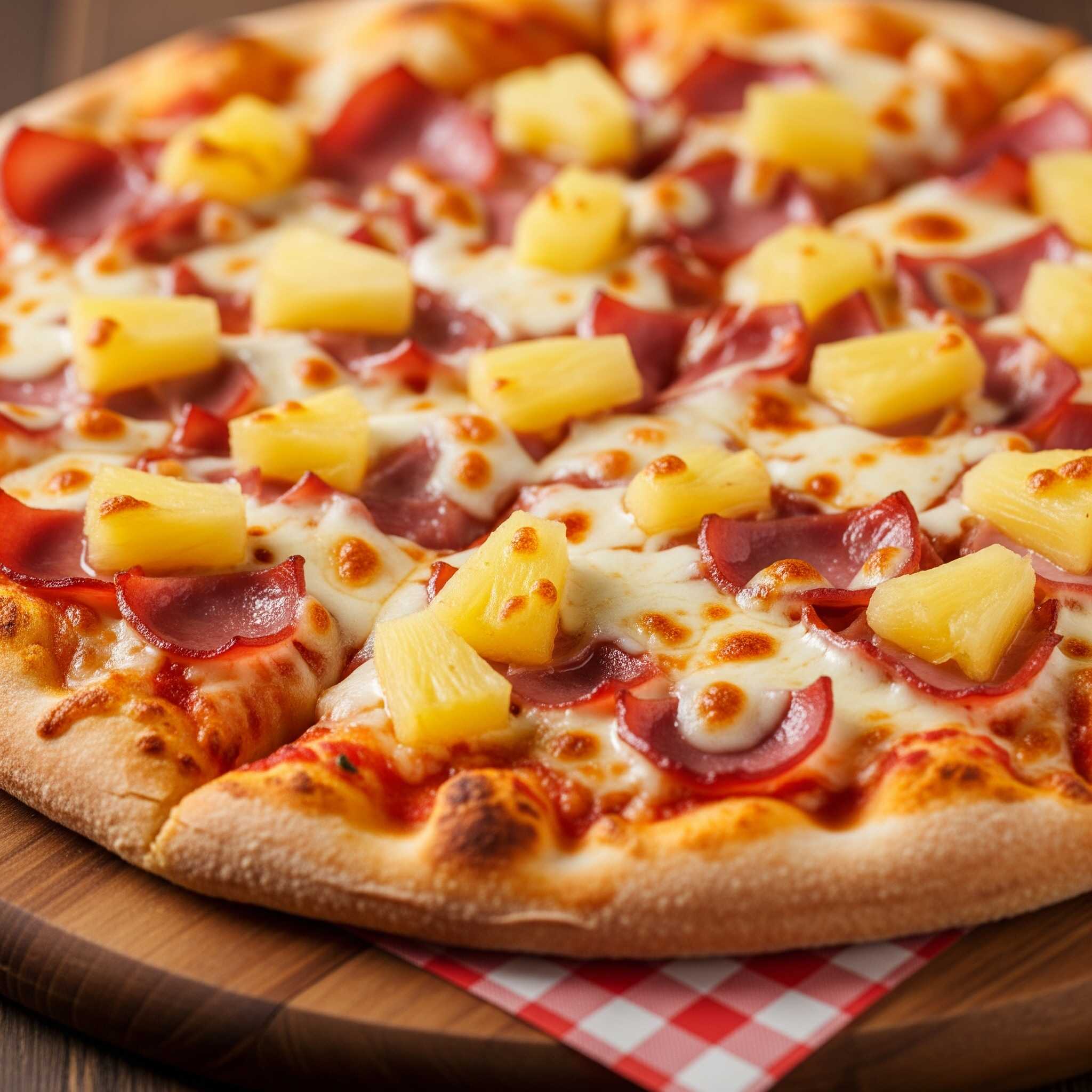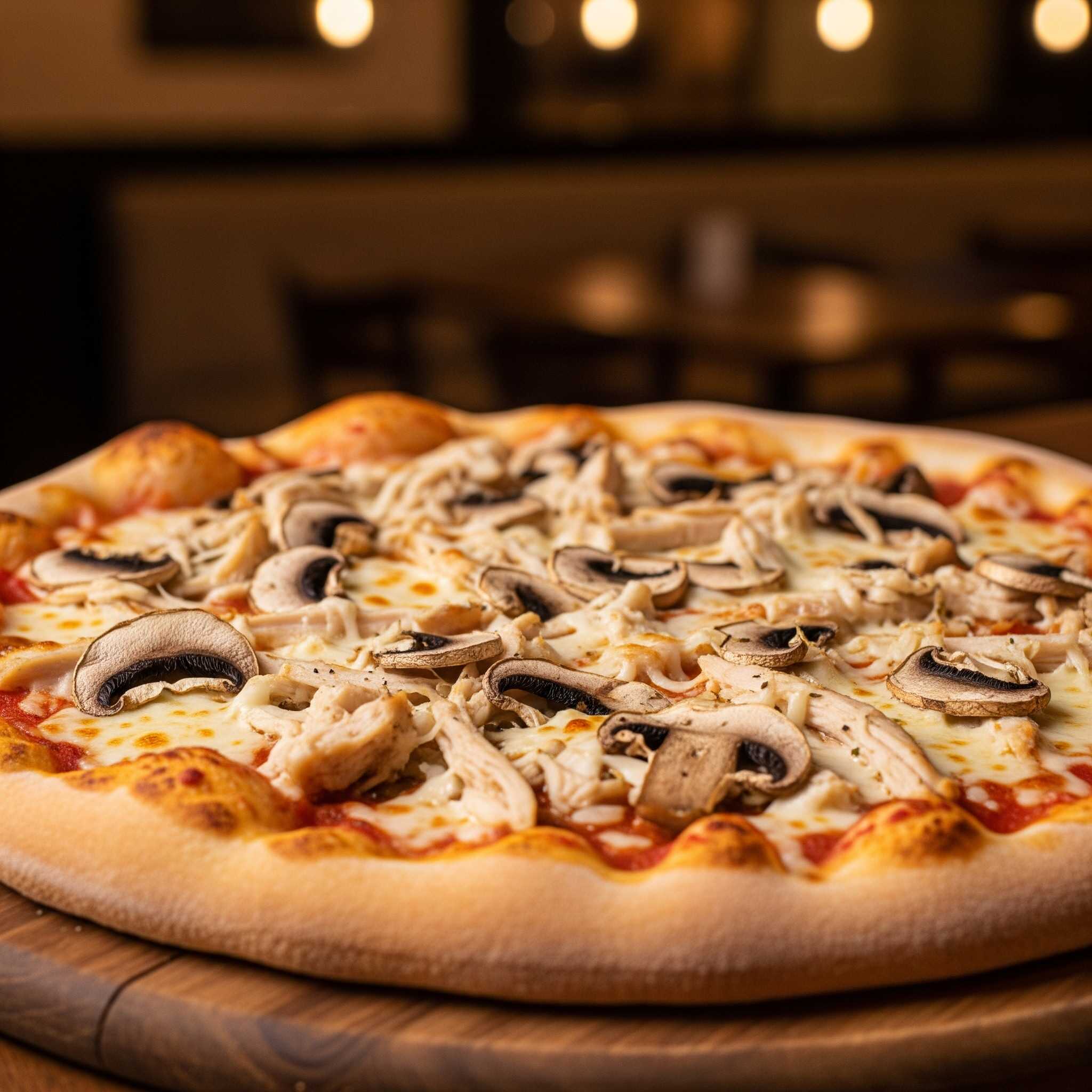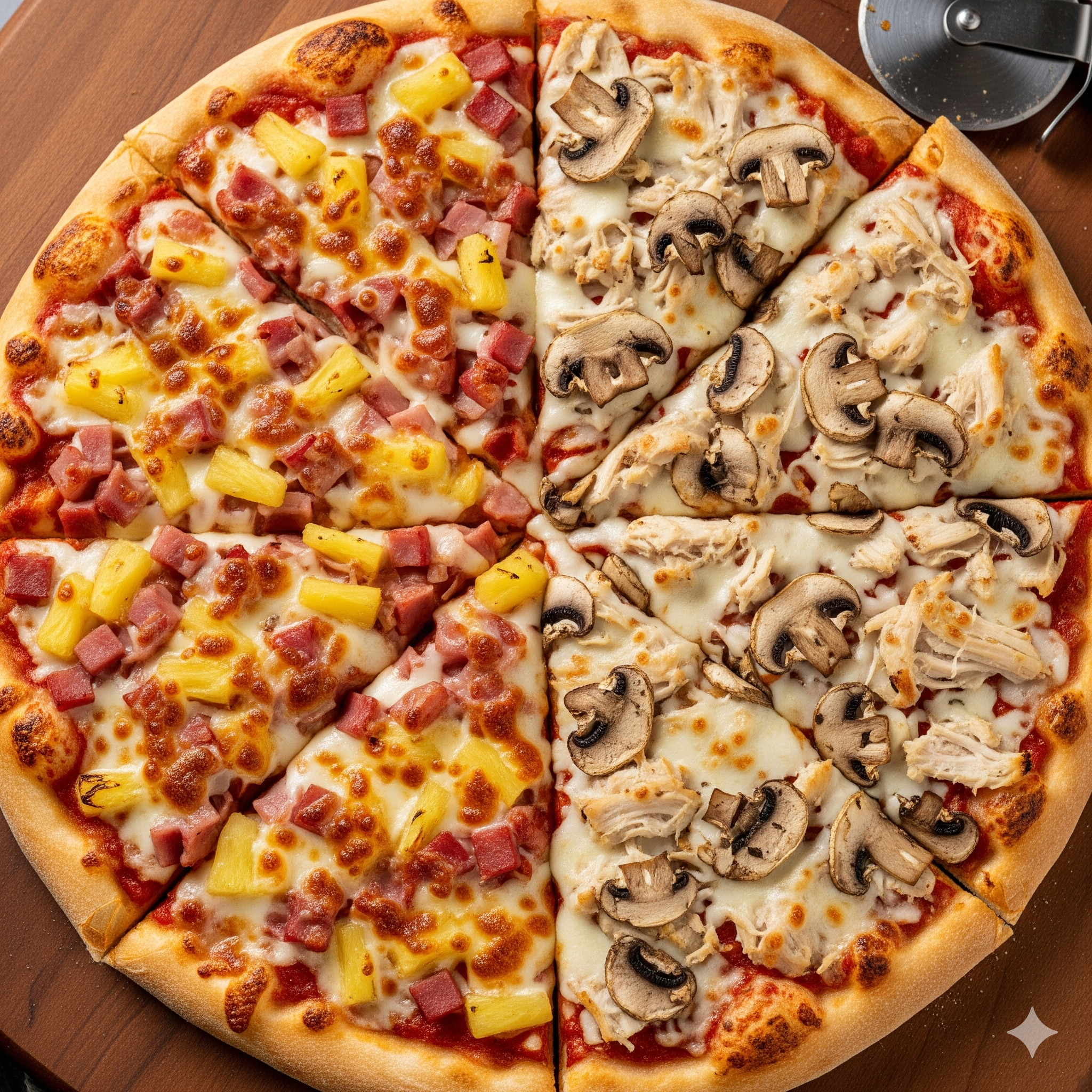 Pizza Mitad Hawaiana - Mitad Pollo con Champiñones