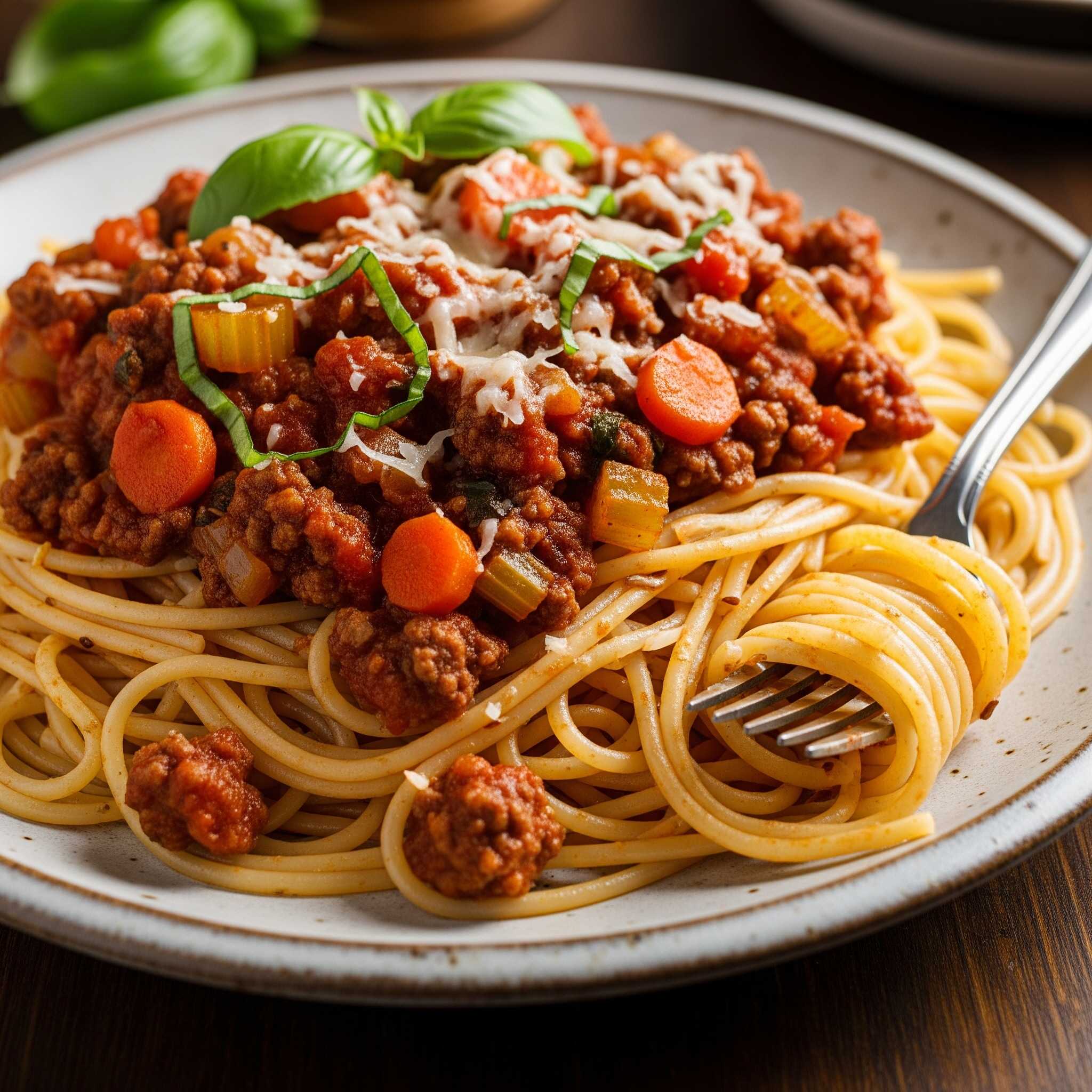 Pasta en salsa bolognesa, acompañada de limonada natural.