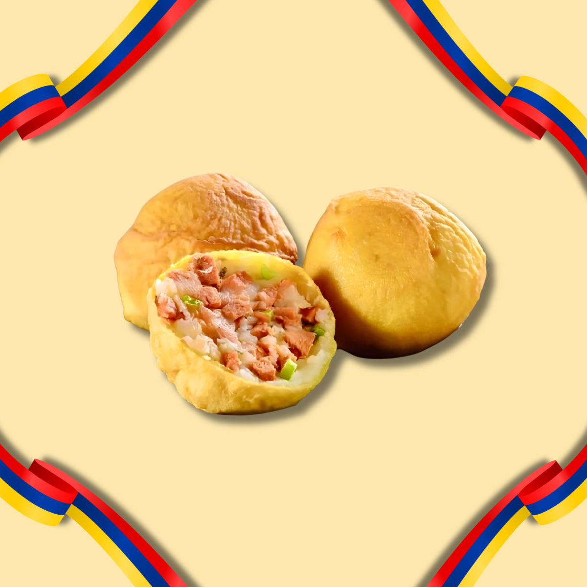 Masa De Maíz, Queso Mozzarella, Jamón, Pollo Desmechado, Carne Molida, Huevo.