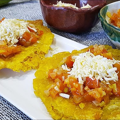 Porción generosa de patacones acompañados con suero costeño, queso rallado y nuestro tradicional ahogado casero.