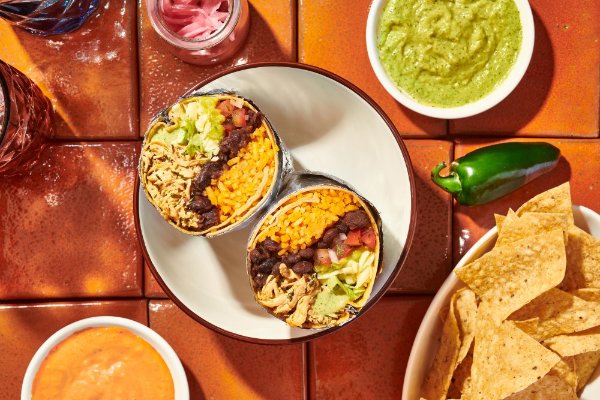 2 Burritos a elección + 2 porciones de totopos + 2 bebidas a elección.