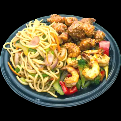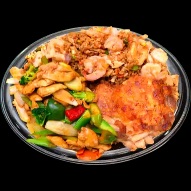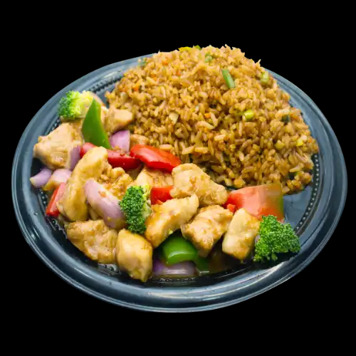 1 base y acompañamiento a elección e incluye pollo a la naranja.