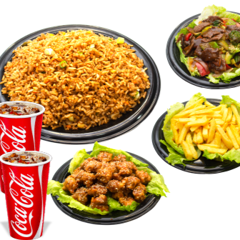 Arroz + 2 Acompañantes + Papas Fritas + 2 Bebidas