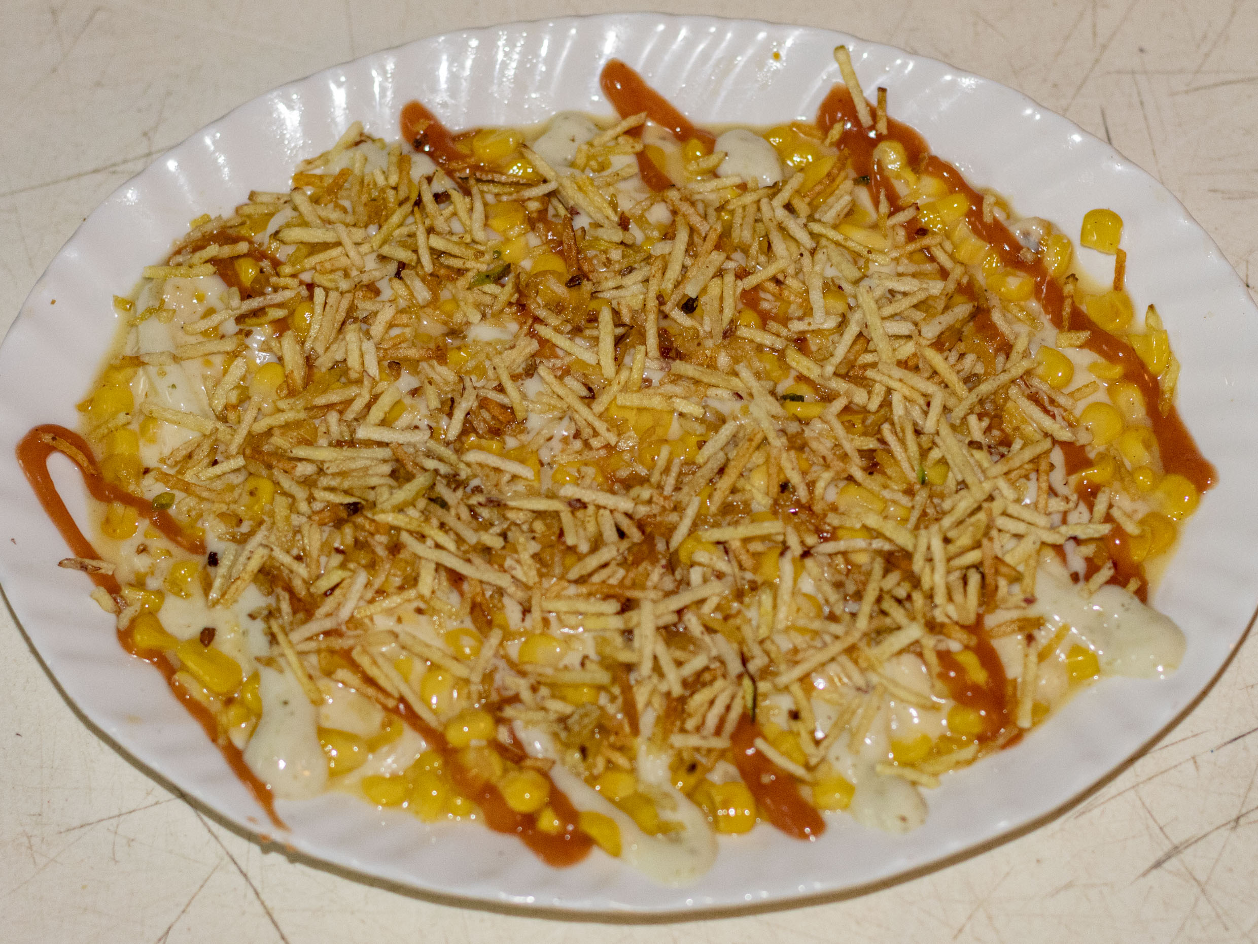 Maíz, queso mosarella,salsa de la casa y papa ripio.
