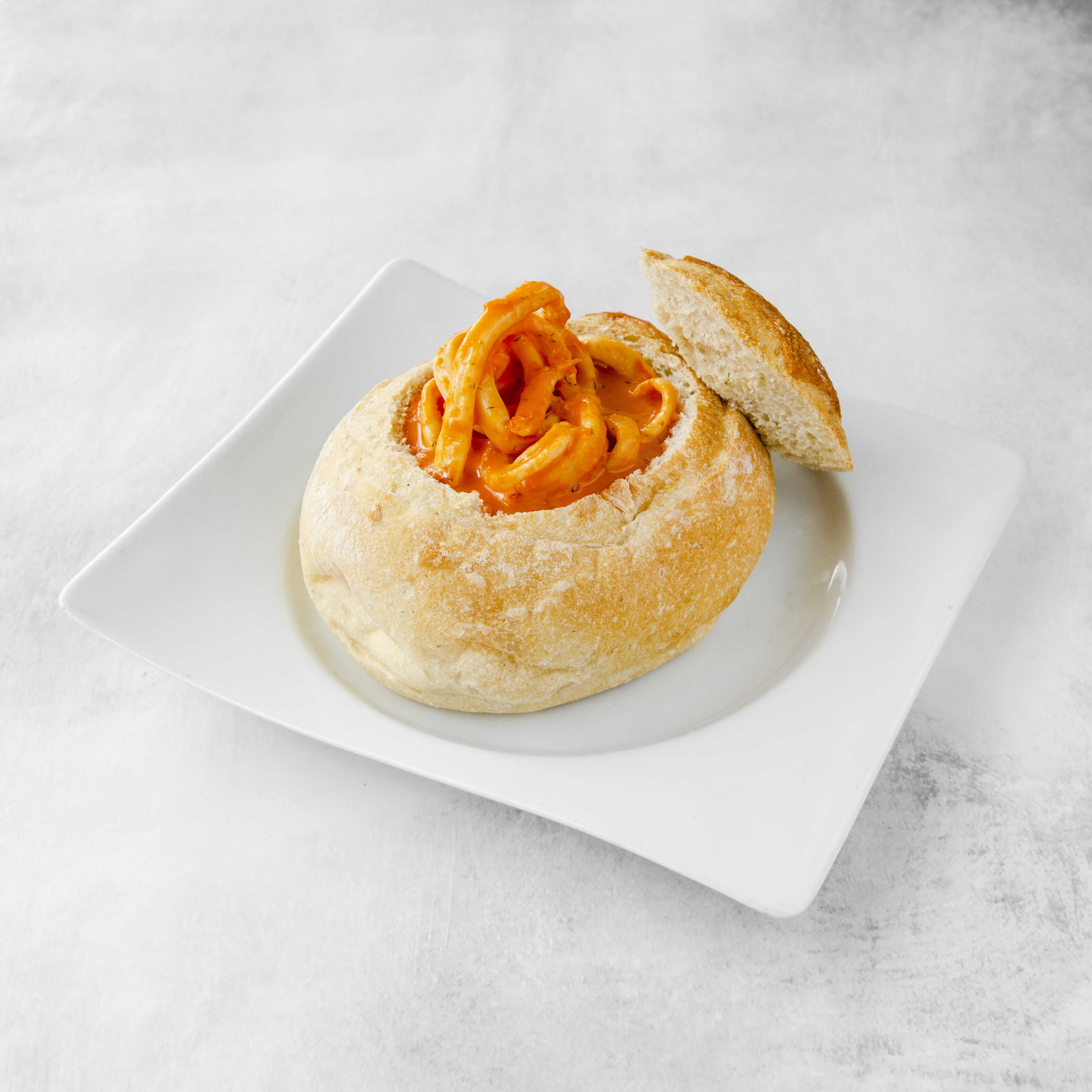 Panne Cook de pan artesanal con calamares en salsa de la casa.