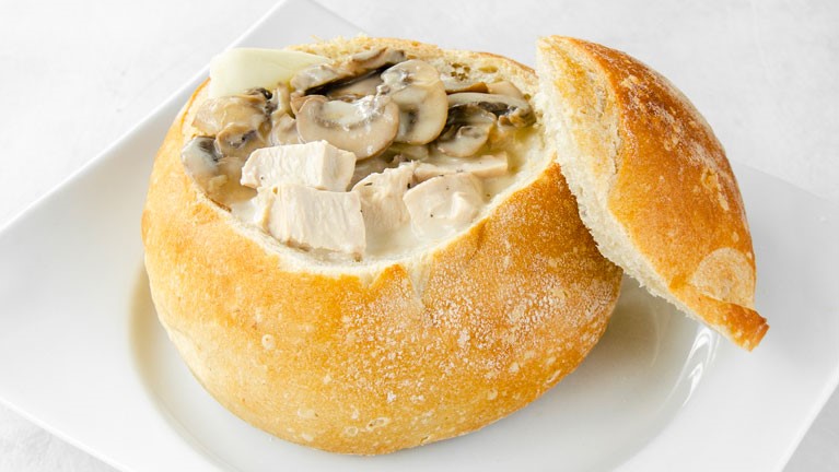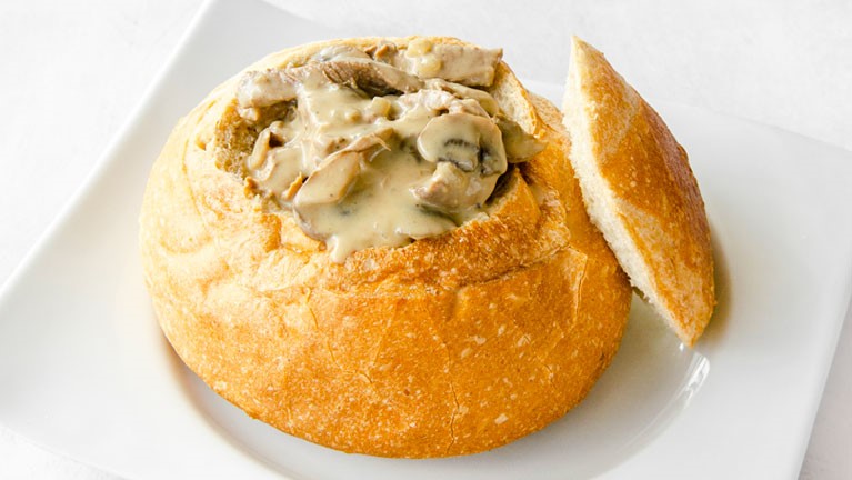 Panne Cook de pan artesanal con pollo y salsa de champiñones.
