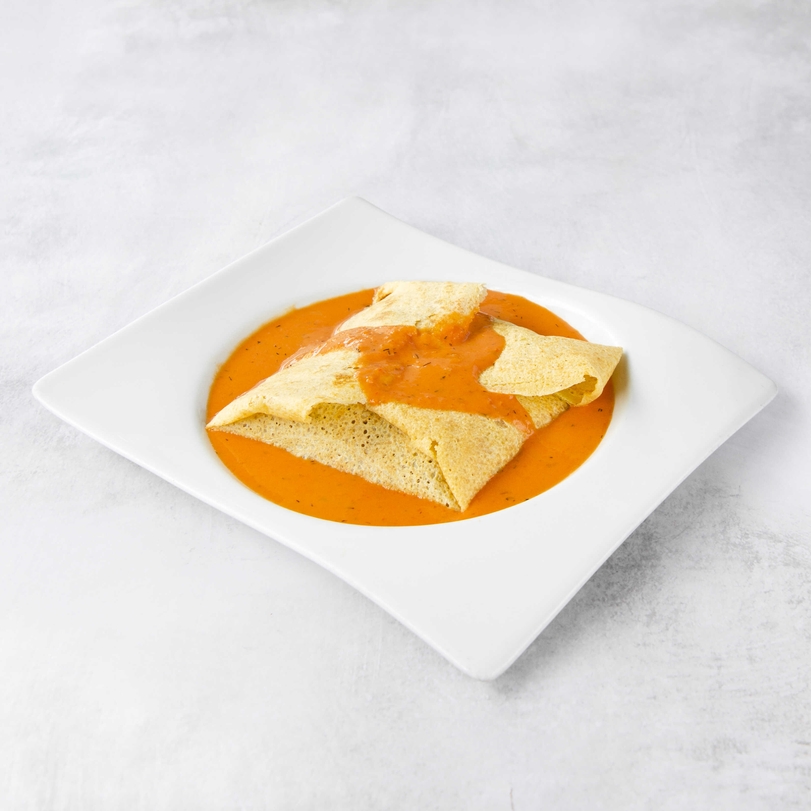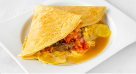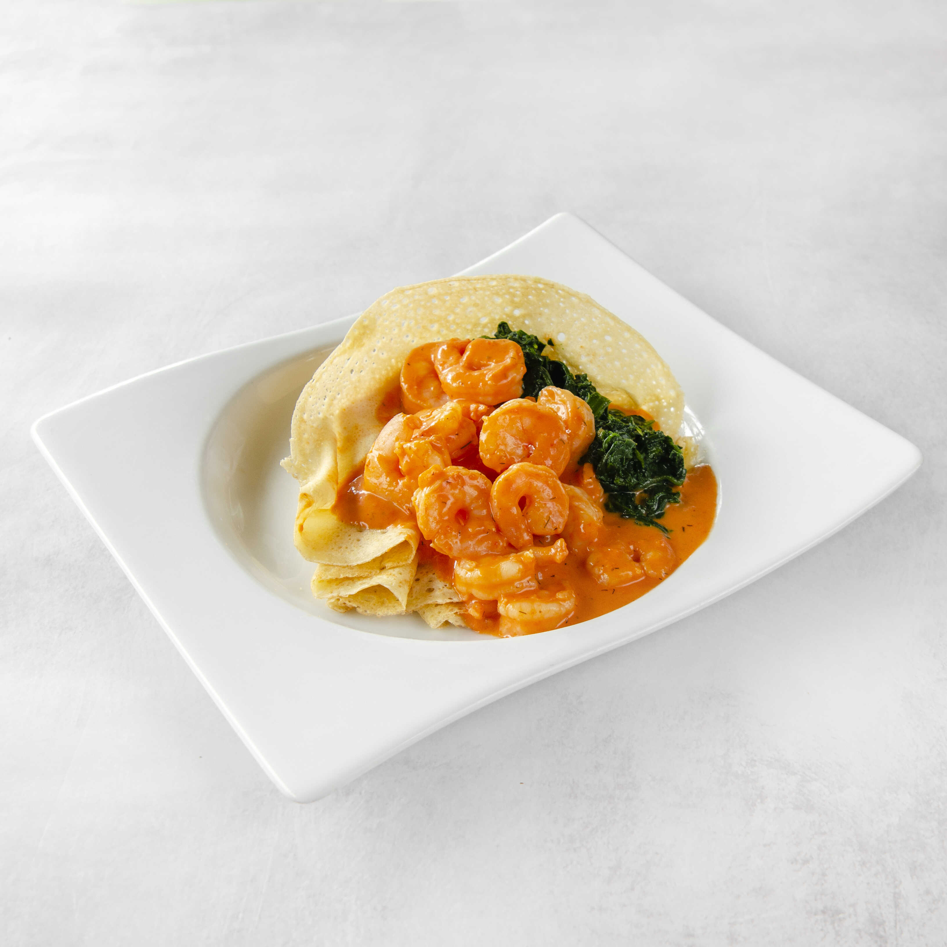 Crepe de camarones + espinaca en nuestra salsa curry.