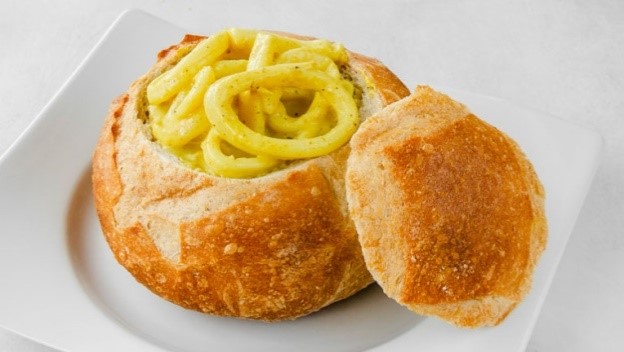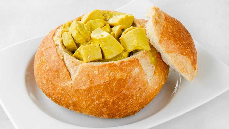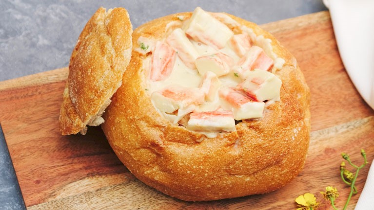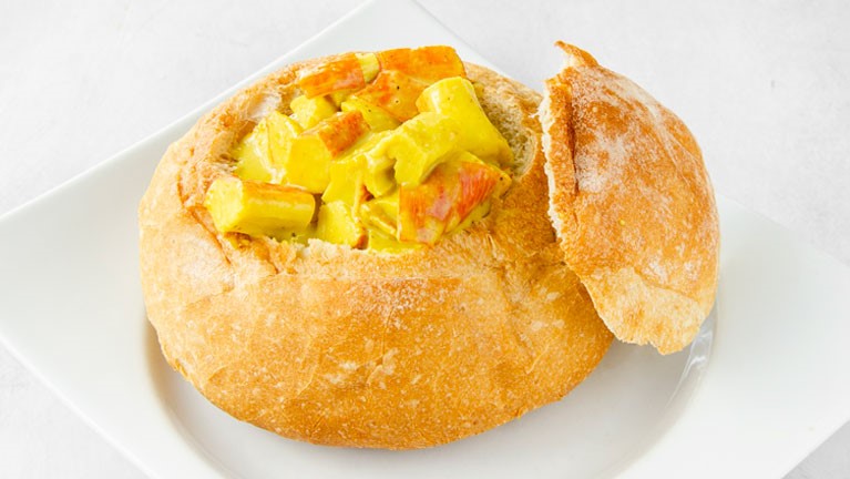 Panne Cook de pan artesanal con palmitos de cangrejo en salsa al curry.