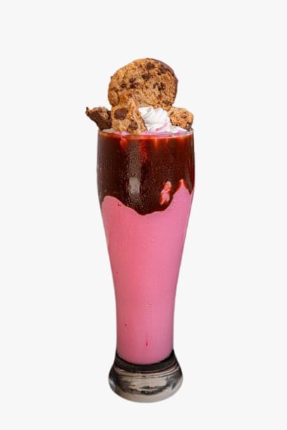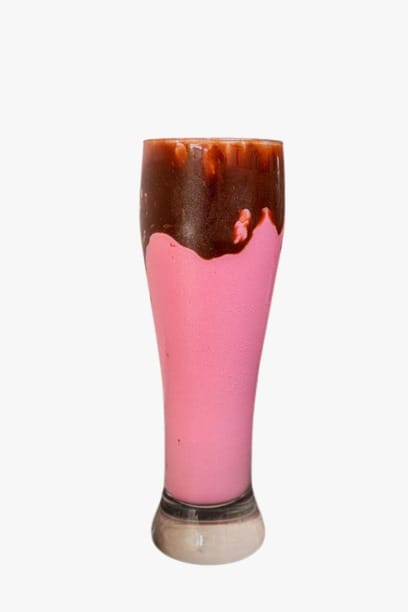 Helado batido, leche, salsa chocolate.