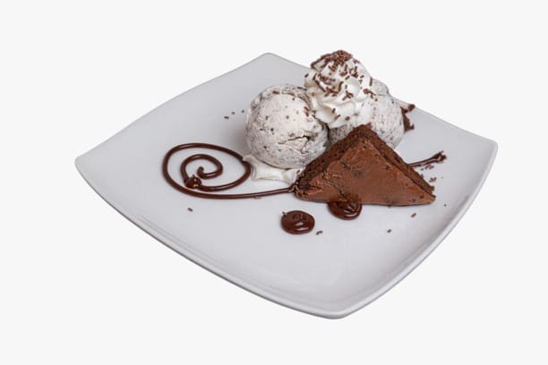 1 Brownie, dos porciones de helado sabor disponible, salsa de chocolate, chantilly, lluvia de chocolate.