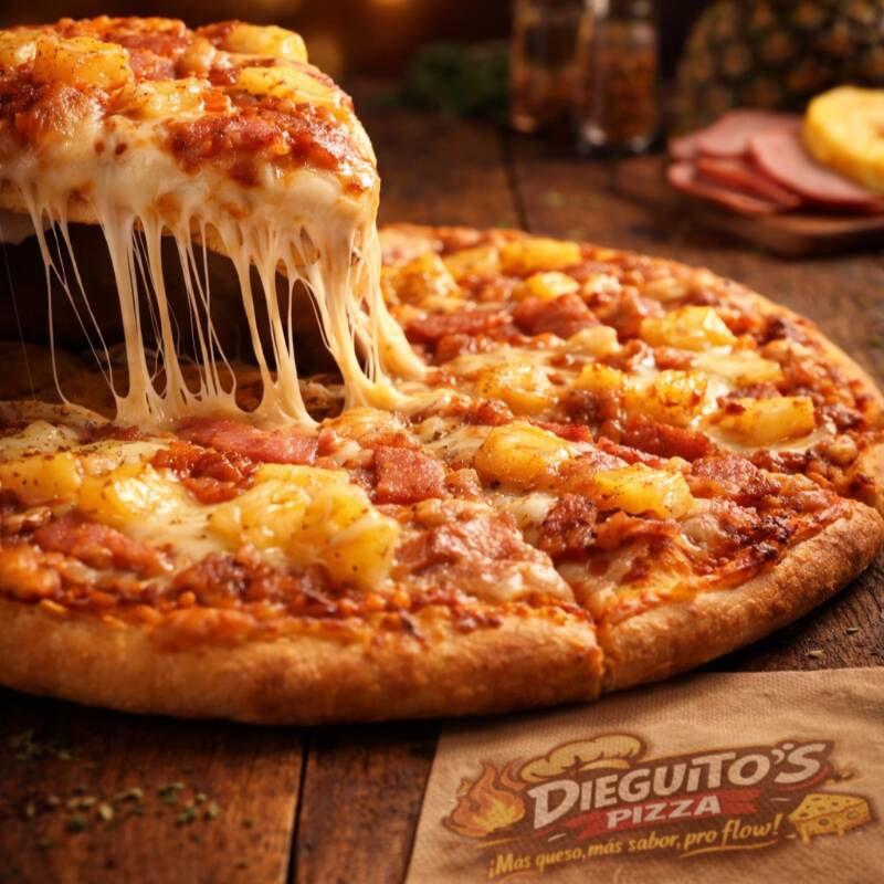 Jamón,piña y queso extragrande tamaño familiar de 50cm