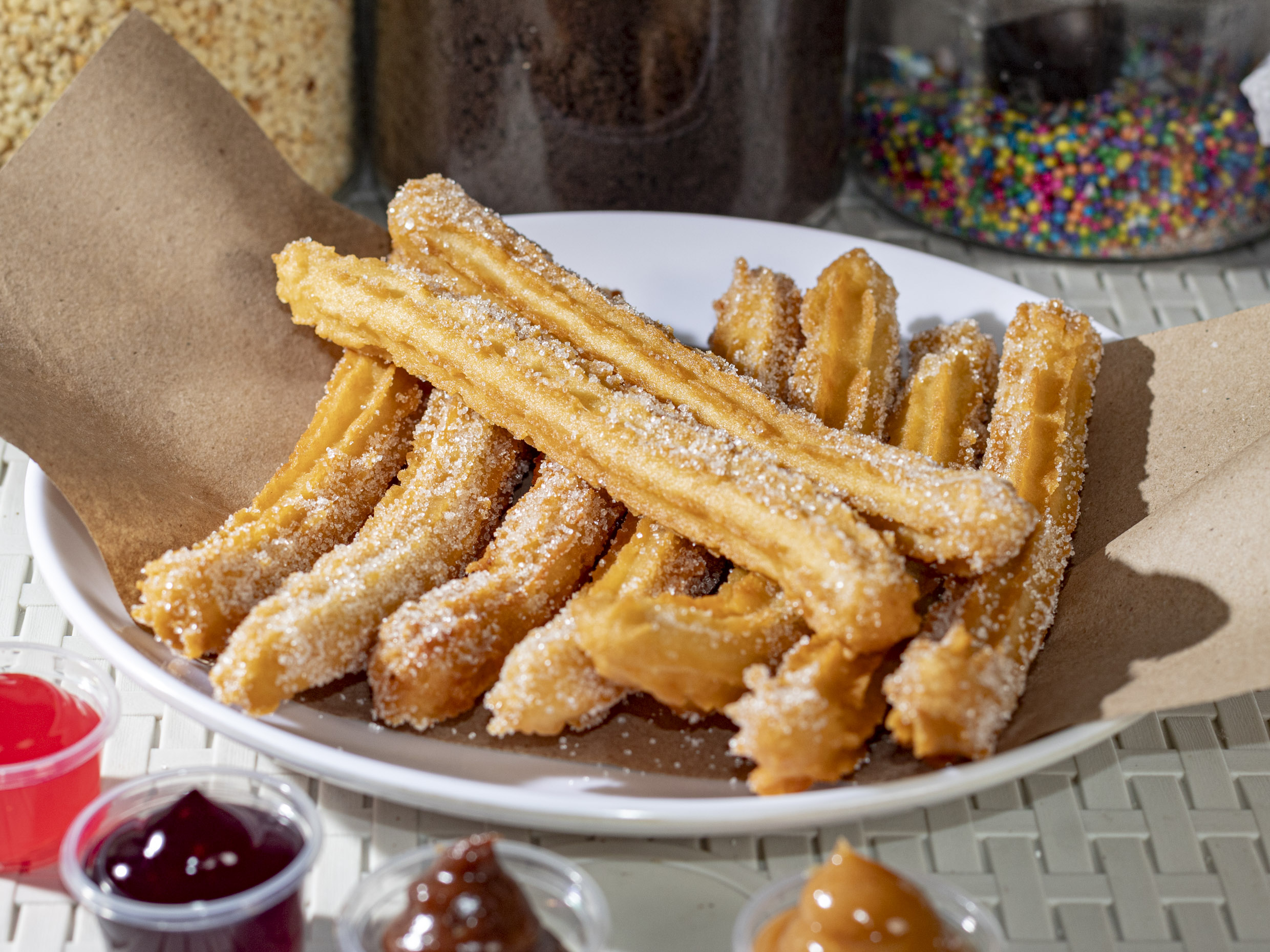 churros crocantes, bañados en azucar y salsa de tu preferencia, escoge la cantidad que deseas