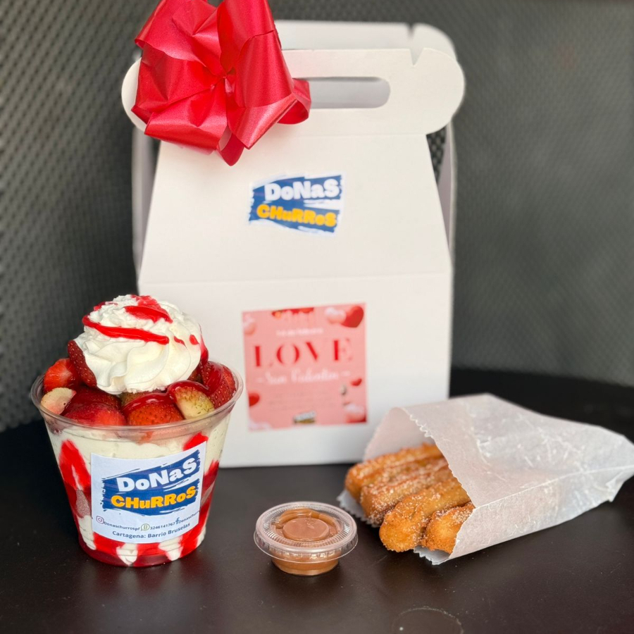 Amor y Amistad Caja de Fresas con Crema y Churrito