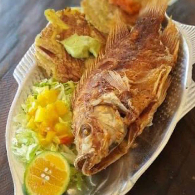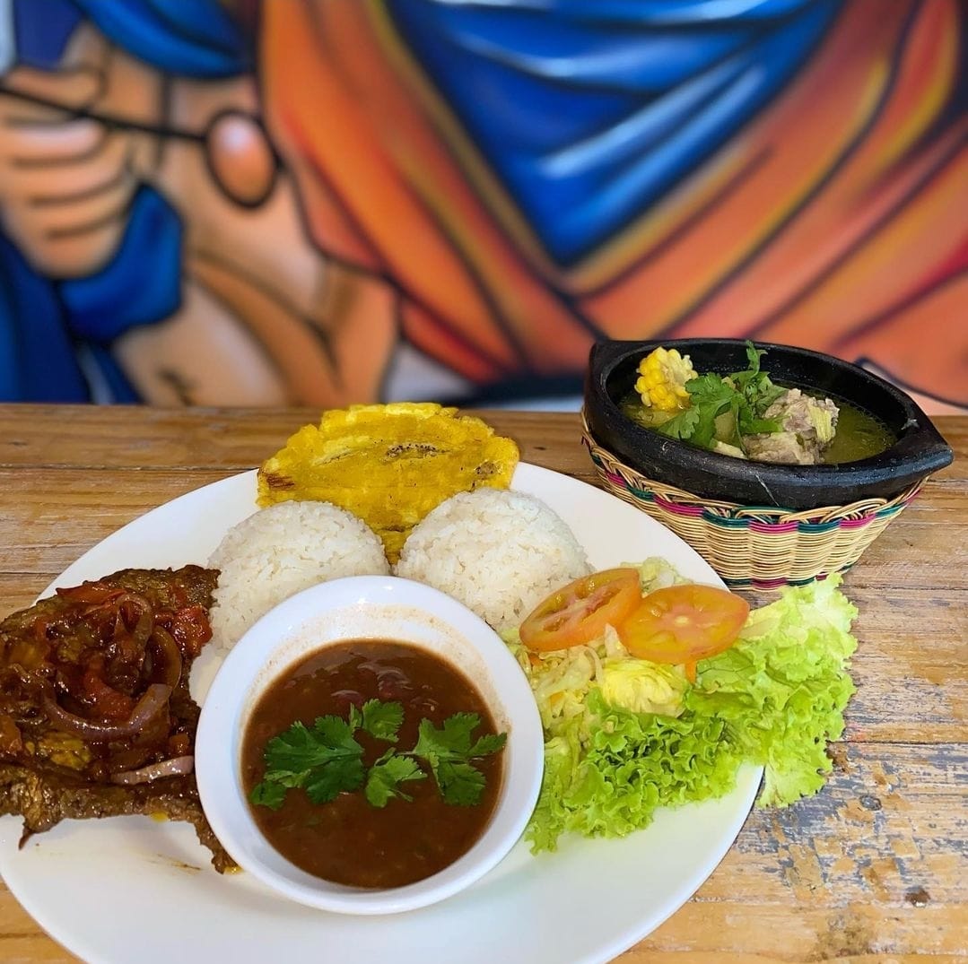 acompañado de patacon y ensalada