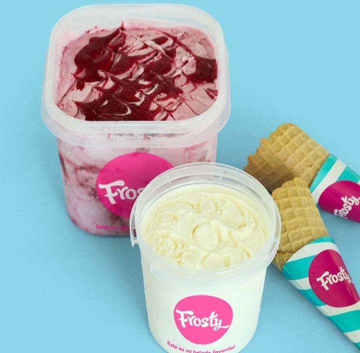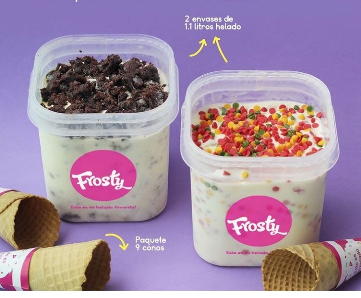 2 envases de 1.1 litros de helado y un paquete de conos (9 uds).
