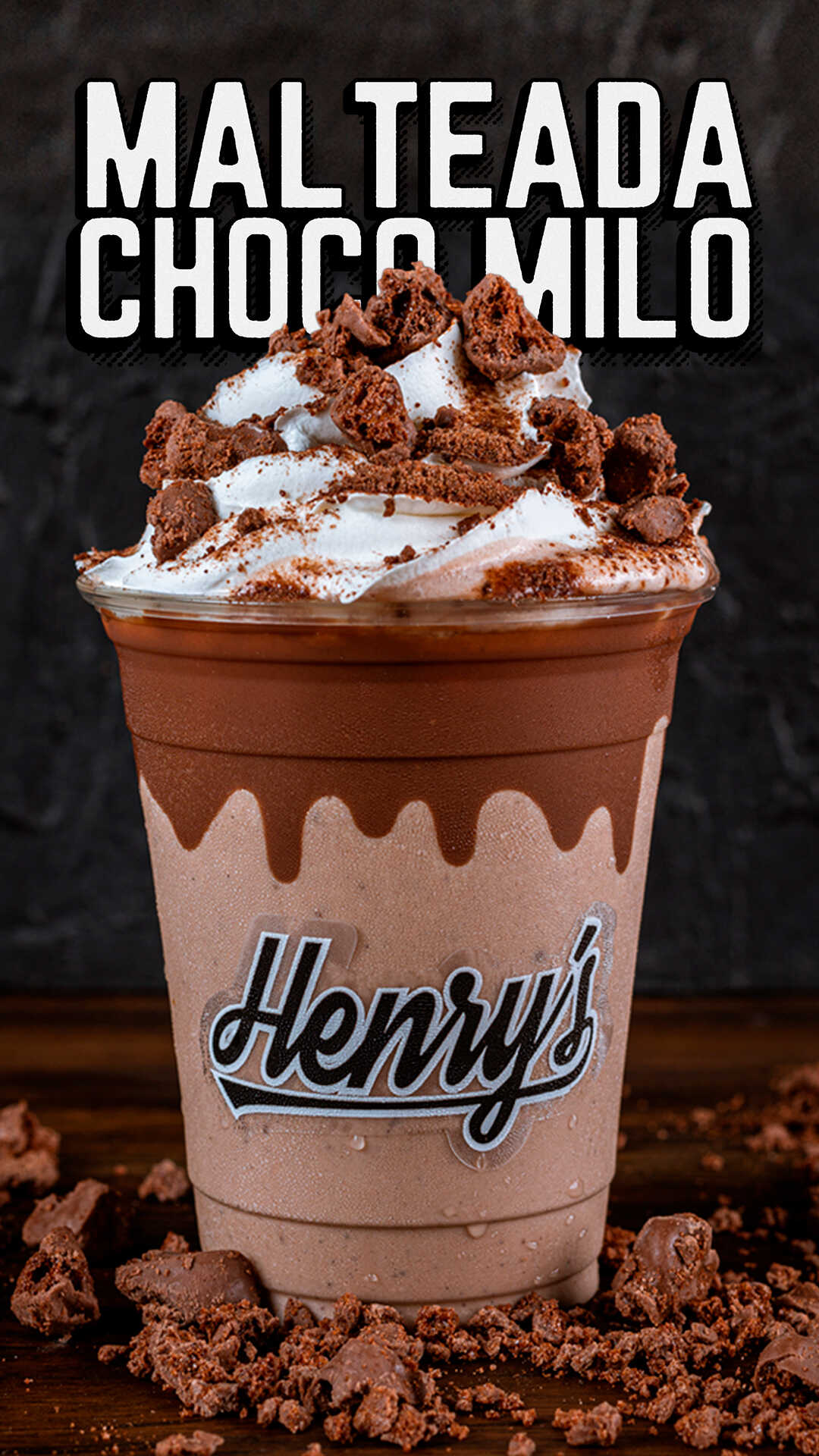 Base de helado, chocalate, milo y chantilly