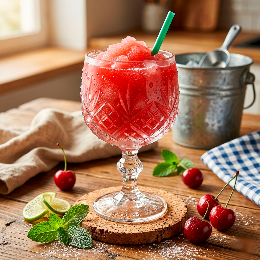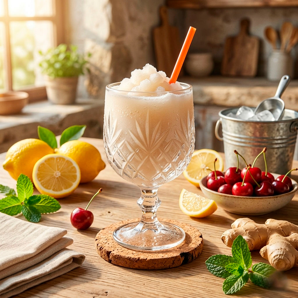 Limonada natural con sirope de cereza para ese color y dulzor especial. La combinación perfecta entre ácido y dulce. 400 ml.