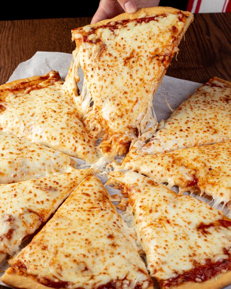 Pizza 10 porciones. Ingredientes: queso mozzarella, chorizo.