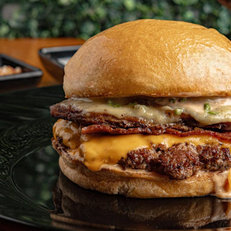 Pan brioche, 150 g de carne Angus, cebolla caramelizada, vegetales frescos, queso cheddar, tocineta ahumada artesanal y nuestra salsa secreta de la casa.