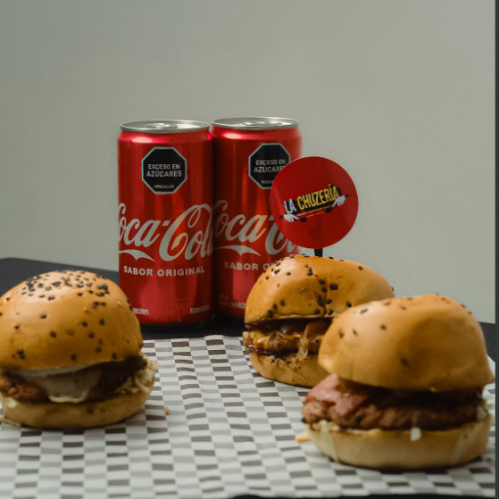 Nuestras 3 hamburguesas de 50 g de carne smash en un solo plato, hamburguesa la chuzeria, callejera y piña.