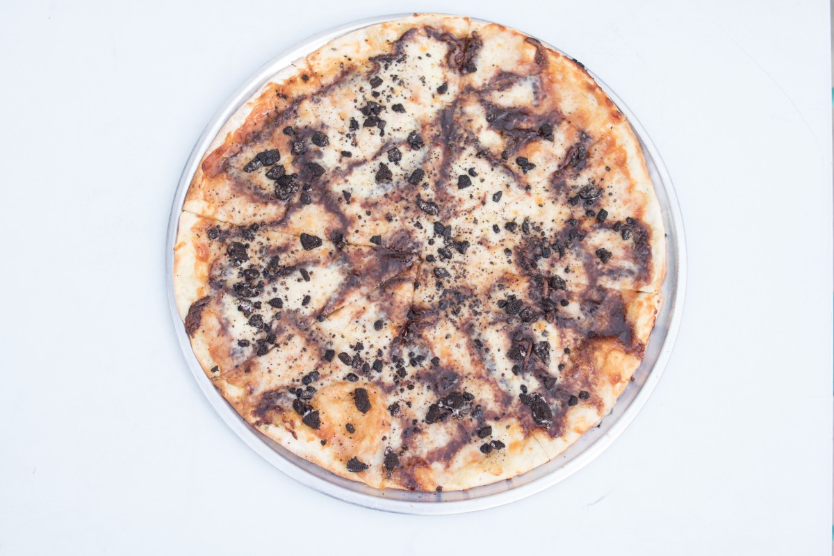 Mozzarella, nutella, dulce leche y trozos de galleta oreo.