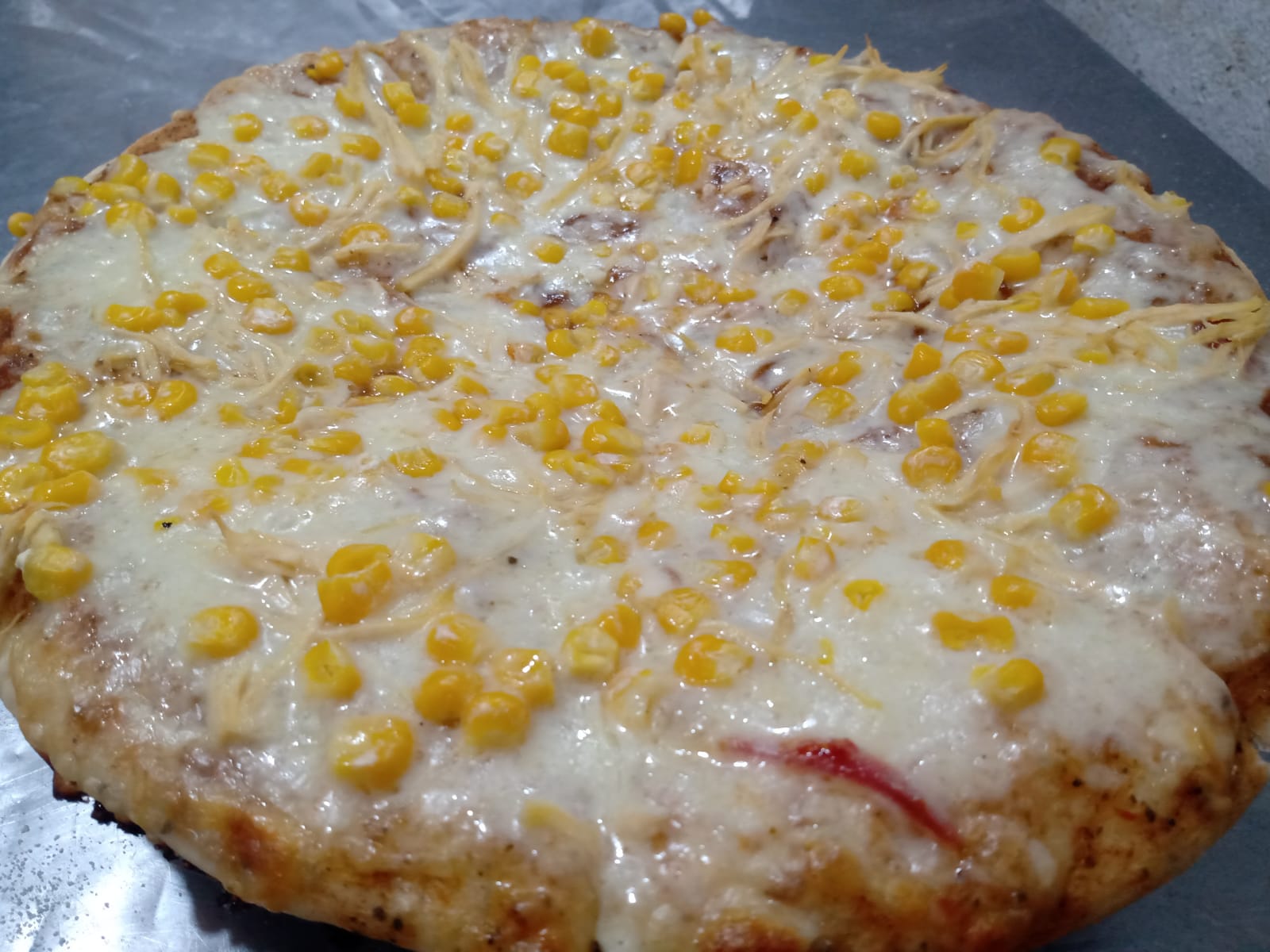 Masa, salsa napolitana, queso mozzarella y maíz tierno.