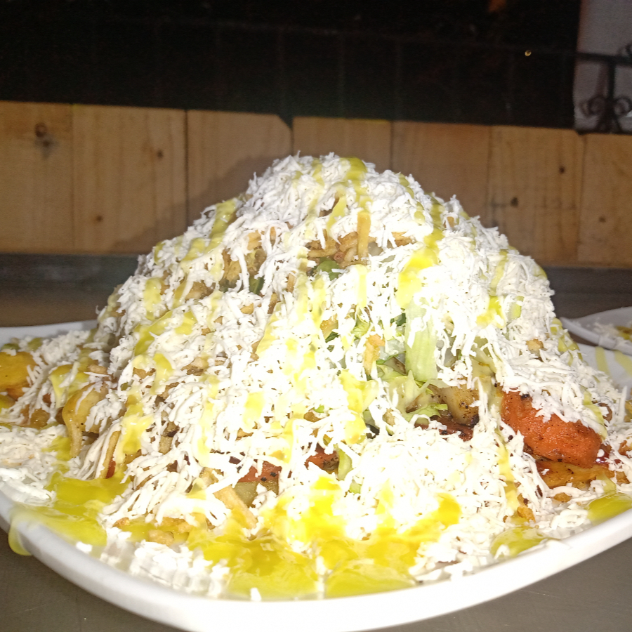 14 porciones de Pizza enchulada acompañada con pollo, chorizo, maiz, ripio y salsa de la casa.