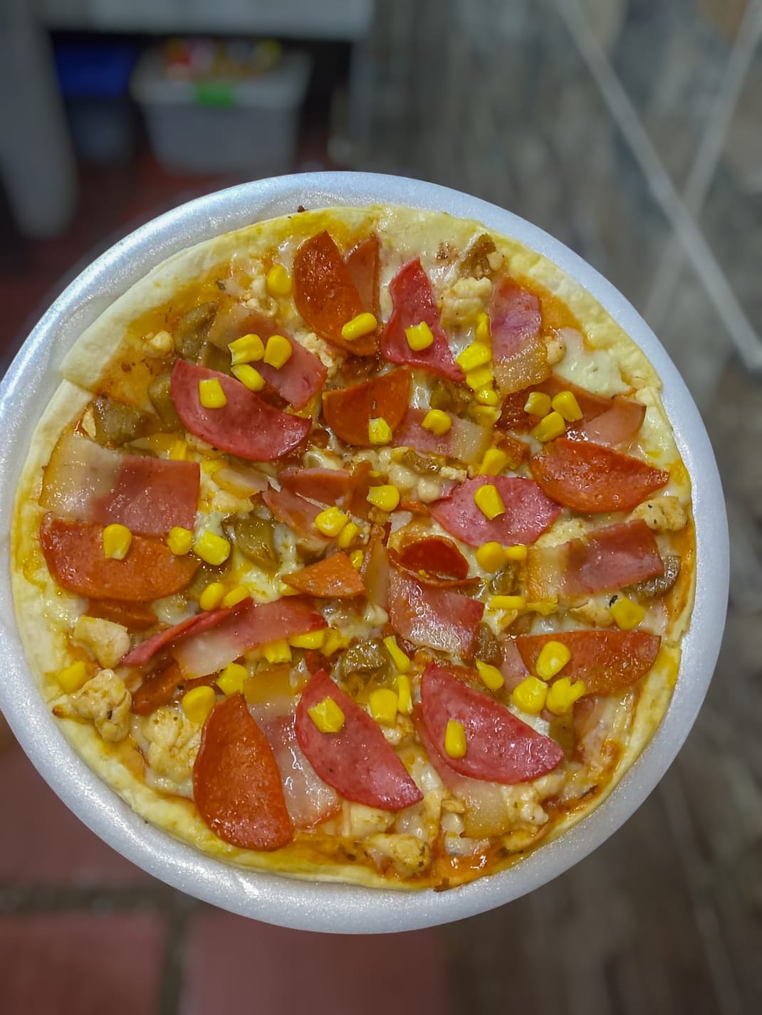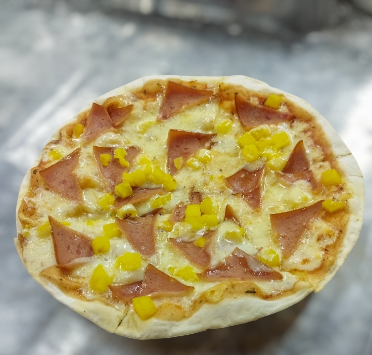 Pizza tocineta y maiz