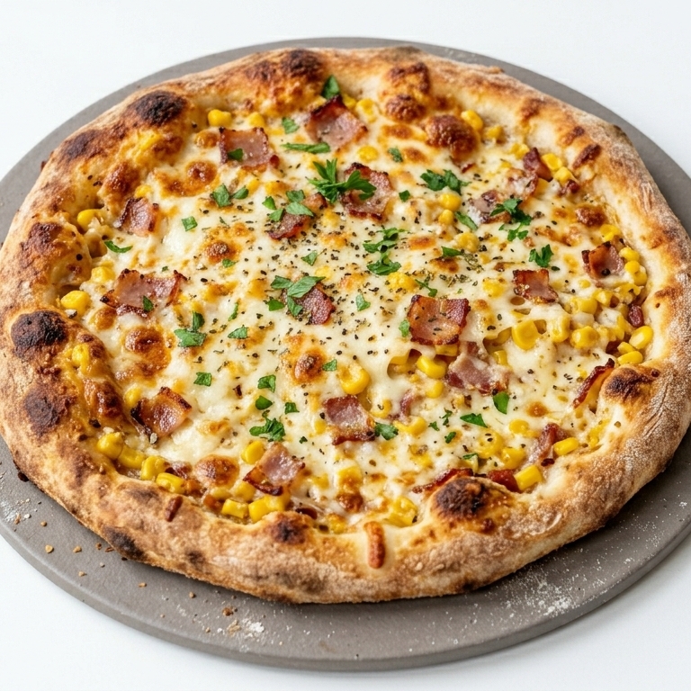 8 porciones - El resultado es una pizza equilibrada entre lo dulce del maíz, lo salado de la tocineta, lo jugoso del pollo y lo umami de los champiñones, todo fundido bajo una capa dorada de queso derretido. Ideal para quienes buscan algo más que una pizza tradicional.