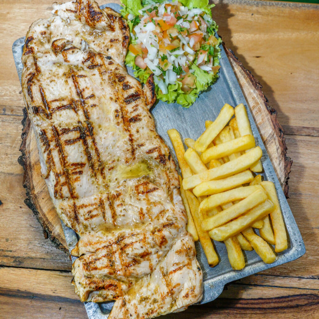 Filete de Pollo 350 gr , Papas a la Francesa, ensalada