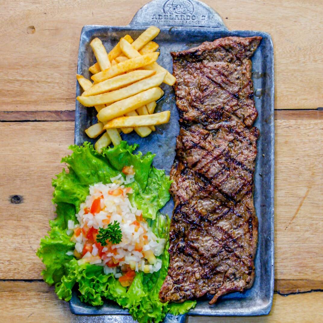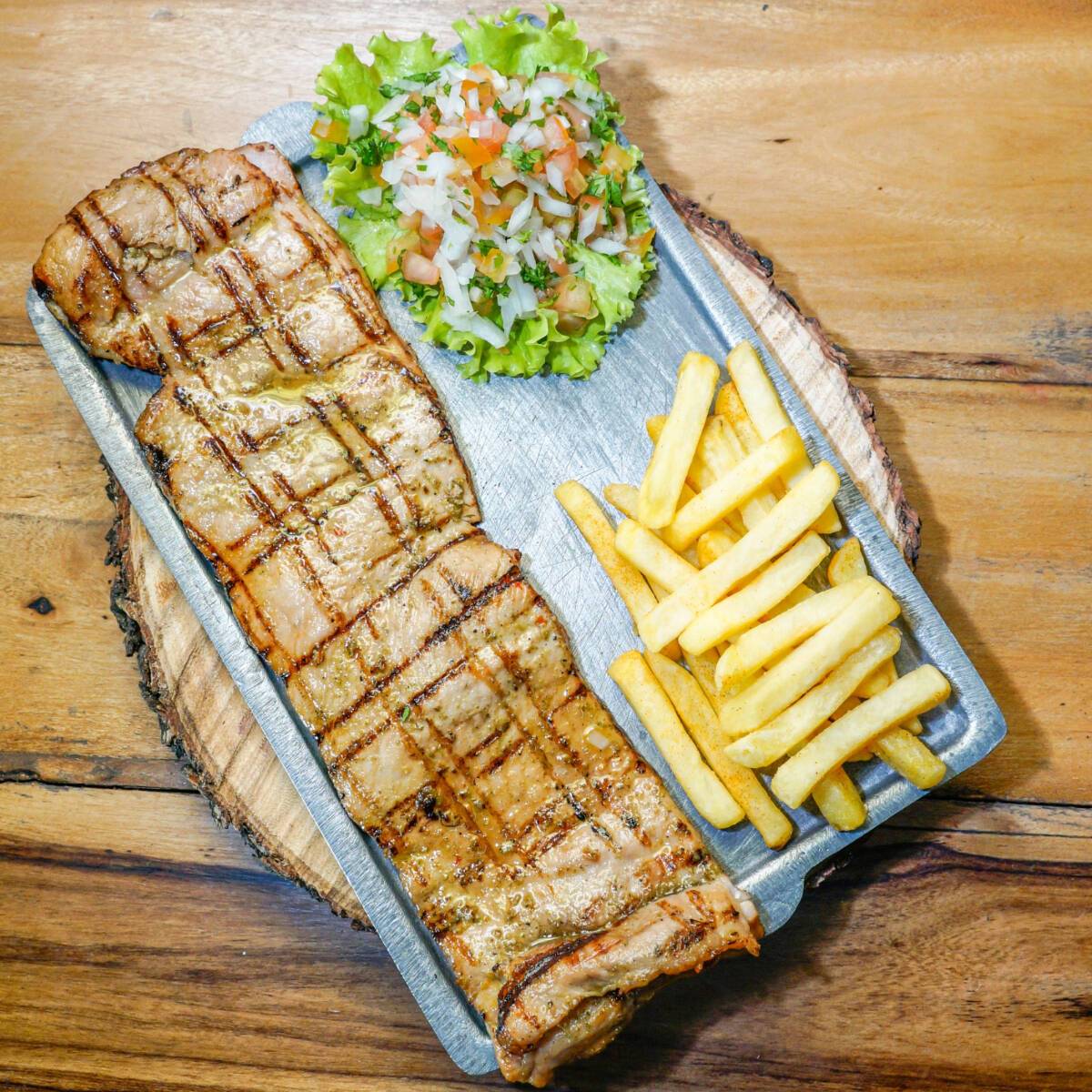 churrasco 350 gr, Papa a la Francesa, ensalada