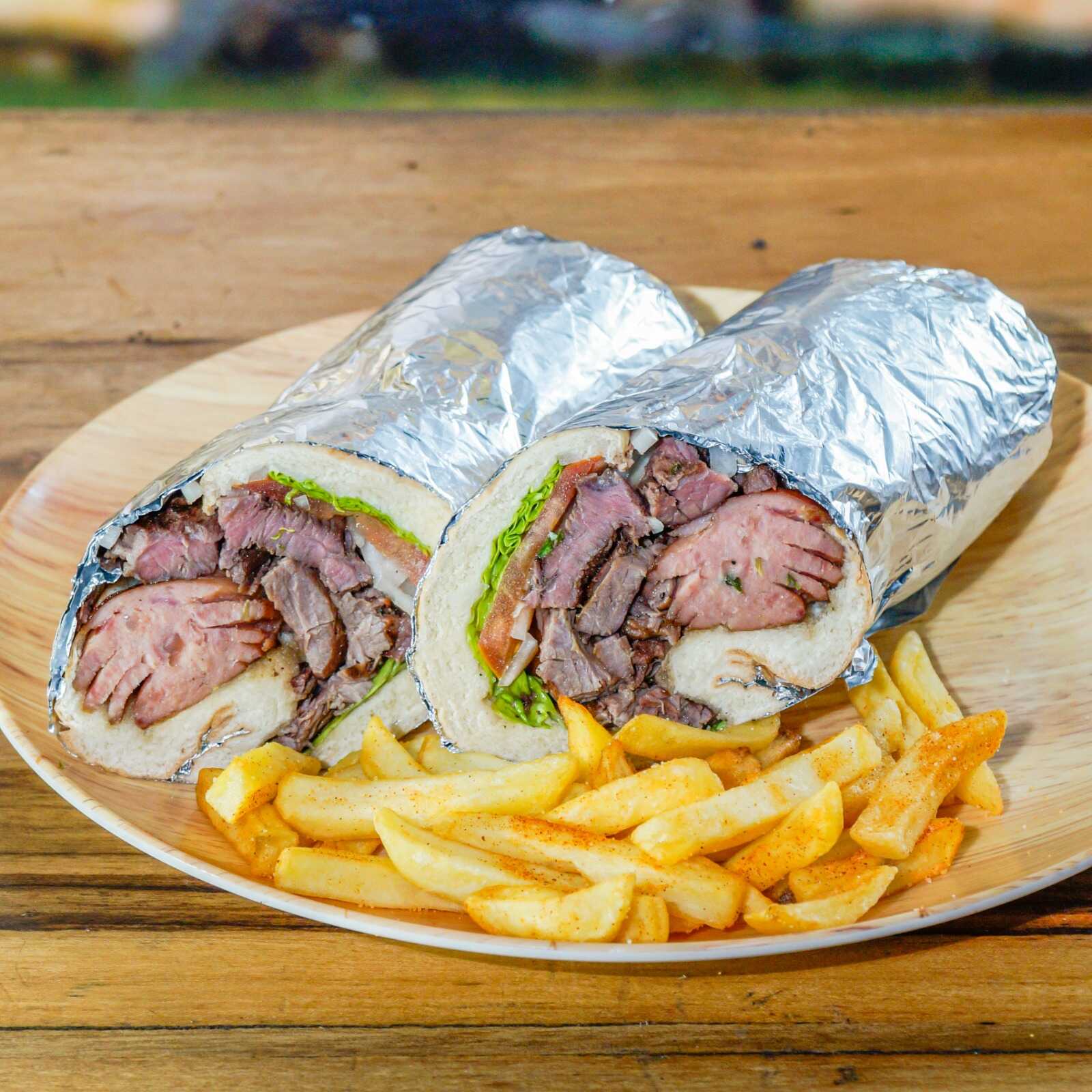 Pan Artesana, Filete de Lomito de Res,filete de pollo, Queso cheddar, tocineta, Lechuga, vegetales