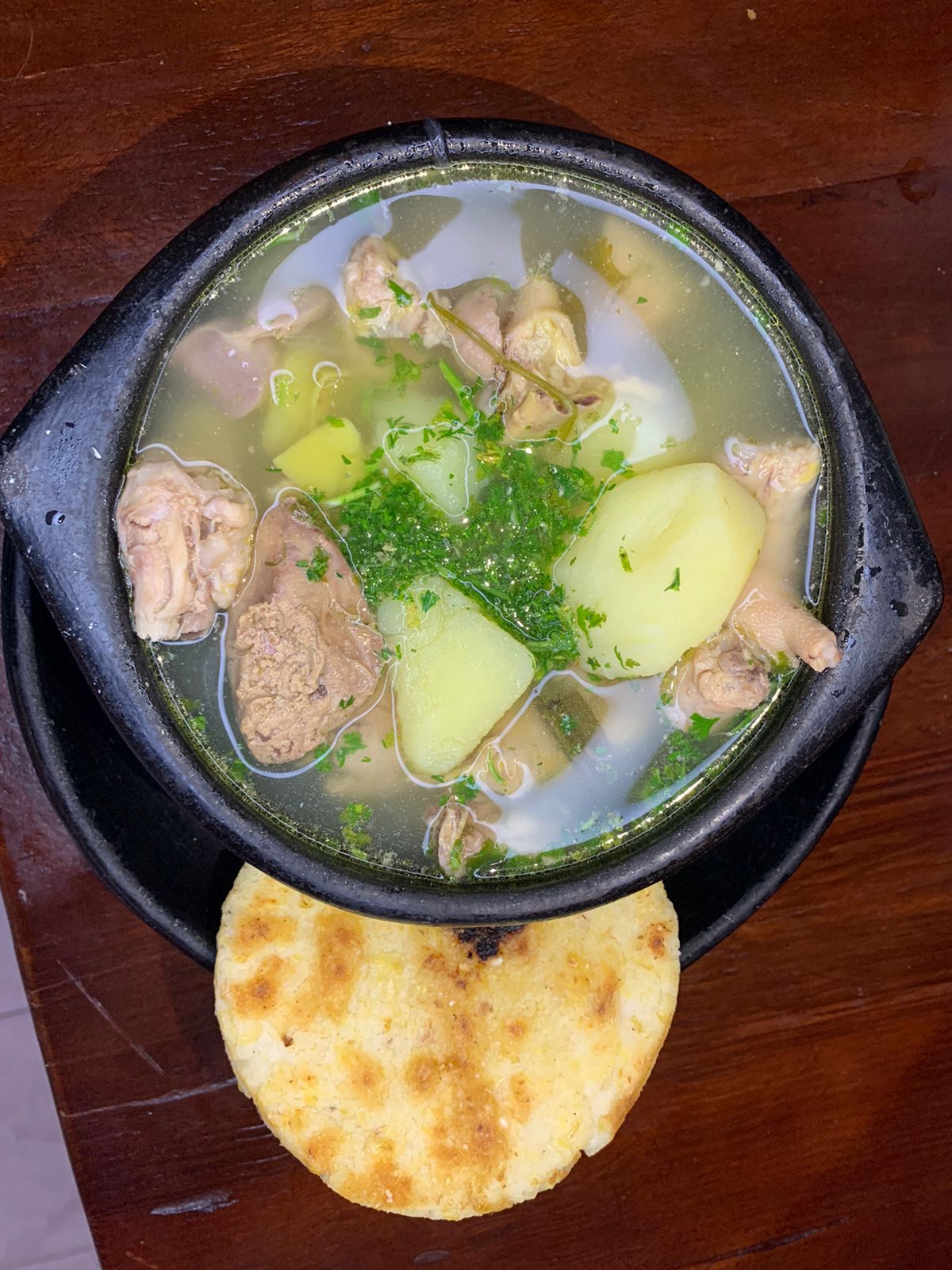 Carne, pollo en cuadritos, queso, salsa bechamel y salchicha zenu.