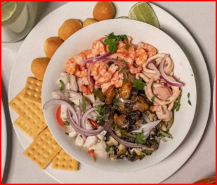 PULPO,CAMARONES,PALMITOS,AROS DE CALAMAR ,EN SALSA BECHAMEL