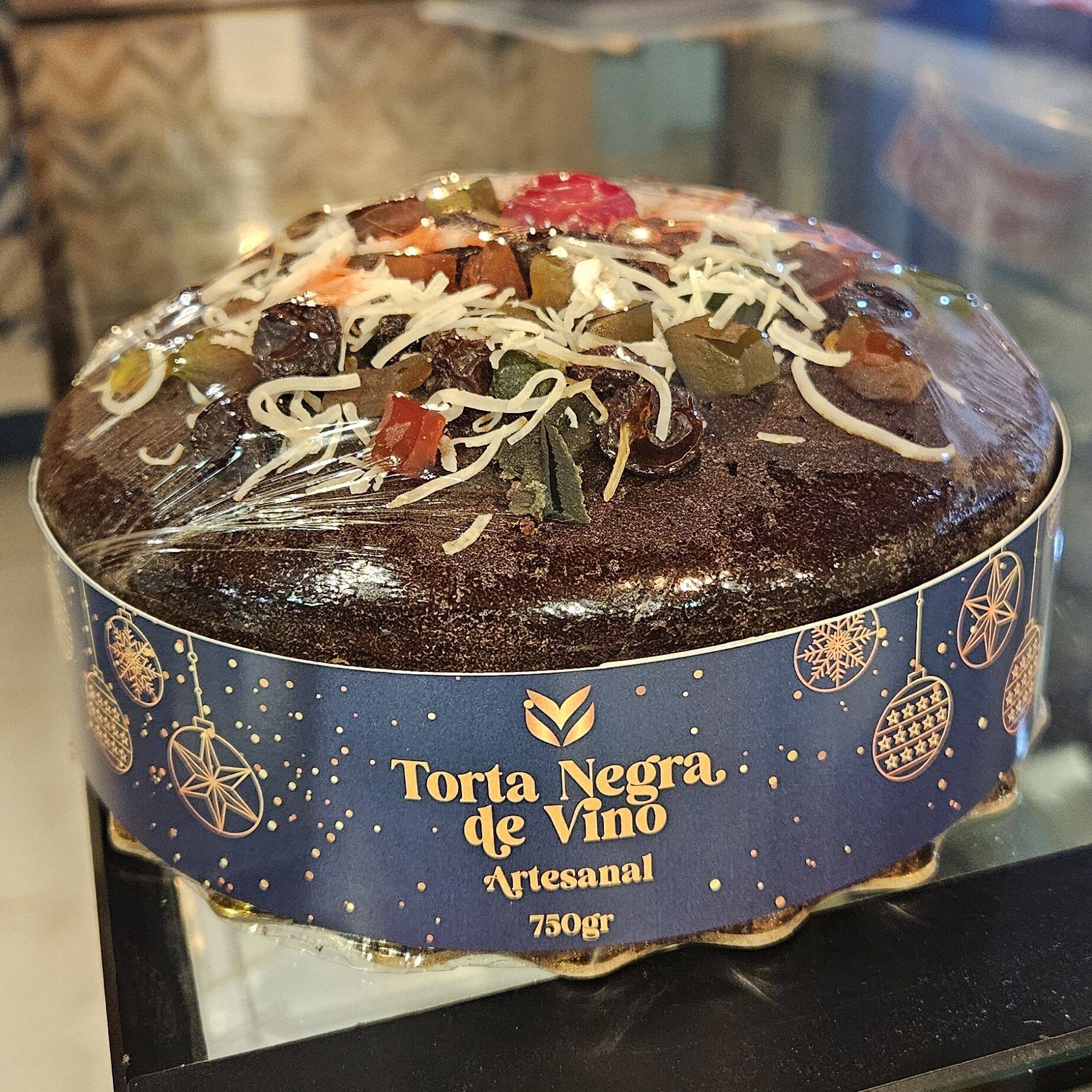 Torta Negra navideña Con Frutas maceradas en vino, 16cm de diametro, 750gr de peso