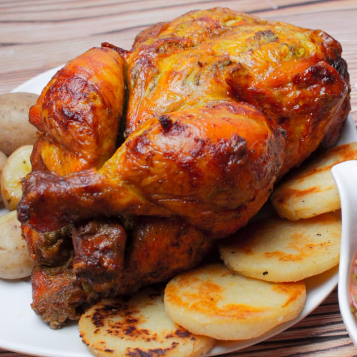 2 Presas, Acompañadas de Papas al Vapor, Arepa, Salsa de la Casa, Miel y Ají.