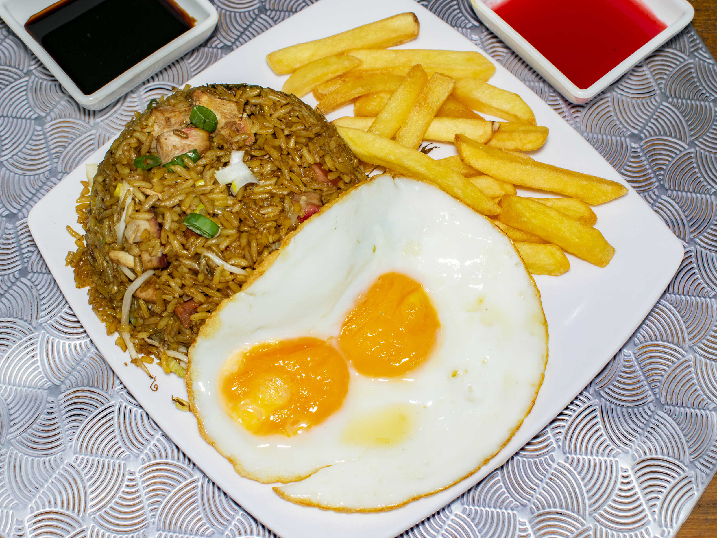 Arroz Especial (350 gr) + Huevo Frito(2) + Papas a la Francesa