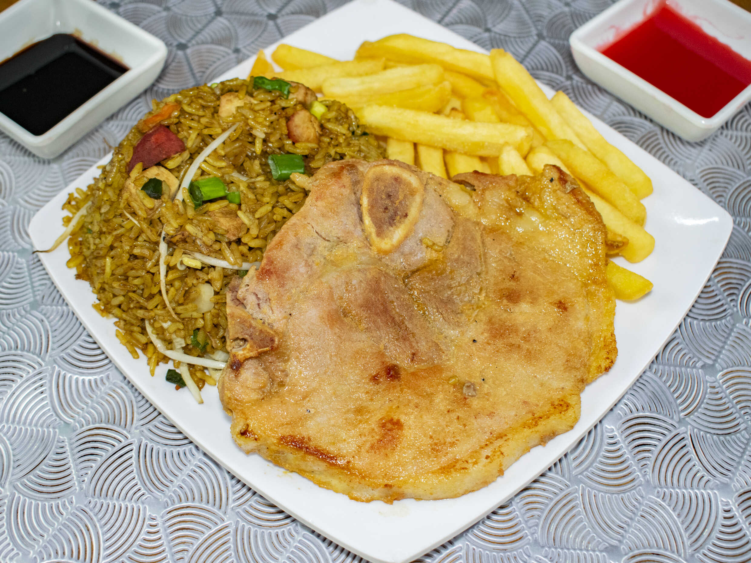 Arroz Especial (350gr) + Chuleta de Cerdo Ahumada + Papas a la Francesa + Gaseosa 250ml