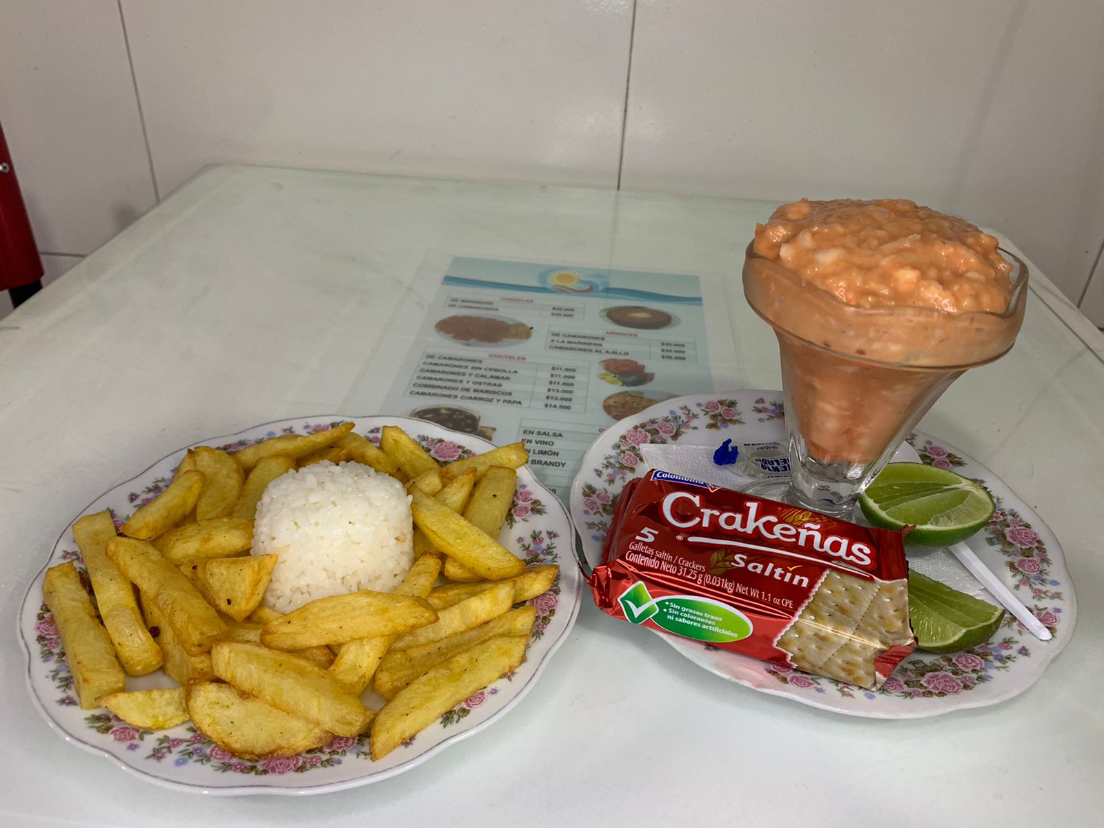 Coctel de camarones con arroz y papa