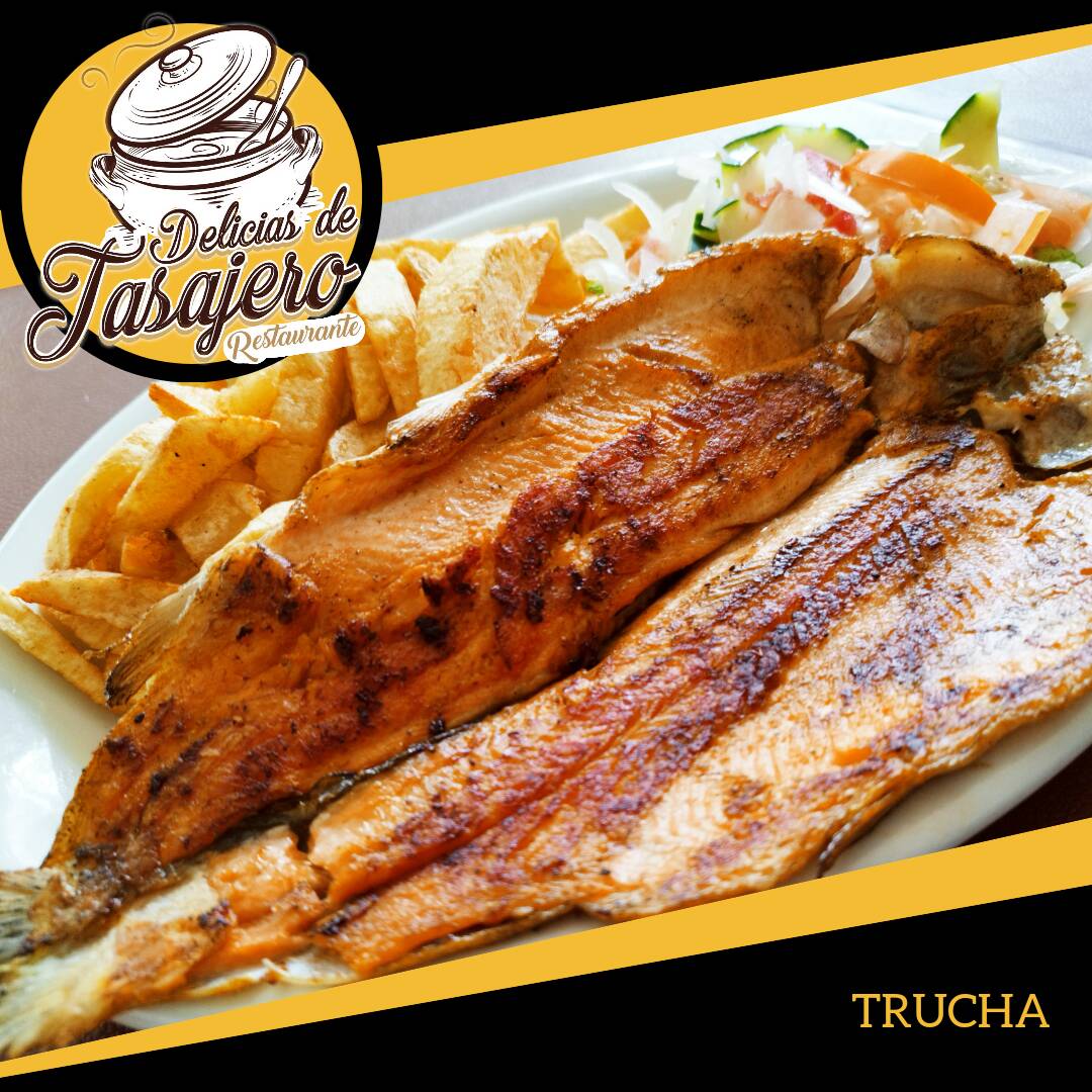 Trucha a la plancha, ensalada, papas fritas, sopa. Los domingos no hay sopa.