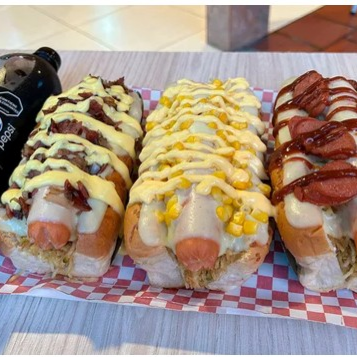 3 Perros calientes en pan brioche, salchicha americana, papita de perro, queso, tártara de la casa y maíz, el 2 lleva chorizo criollo y el 3 con tocineta, bebida a elegir 1.5 litros.